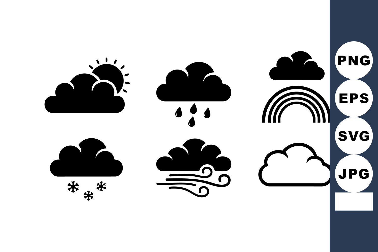 Weather icons with sun, rain, snow, wind, clouds