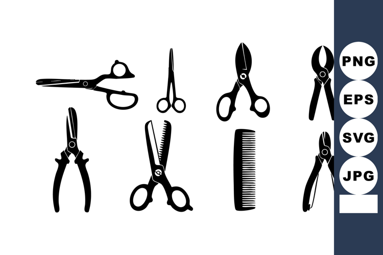 Vintage black silhouette hand tools scissors pliers and comb example image 1