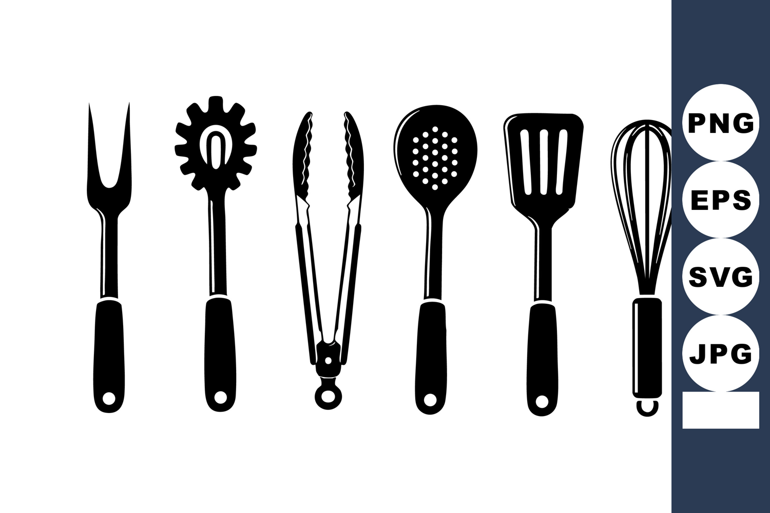 Kitchen utensils silhouette including fork, pasta server, t example image 1