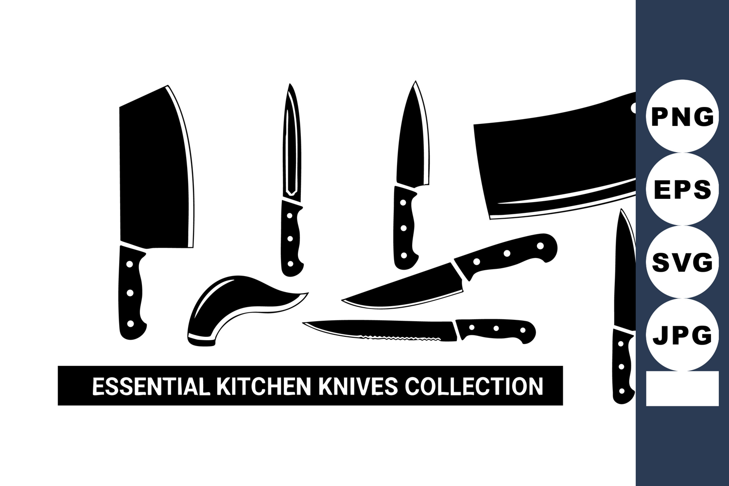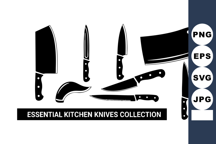 Essential kitchen knives collection silhouette for cooking example image 1