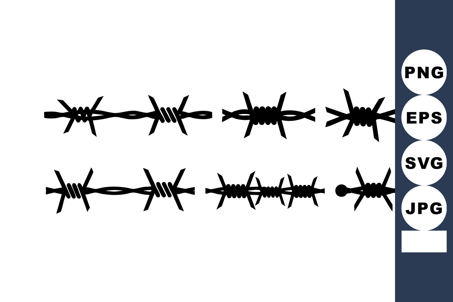 This vector illustration shows various barbed wire segments with sharp points and twisted strands in black silhouette style, symbolizing security and restriction, presented in a clear, minimalistic style. Protective mood.