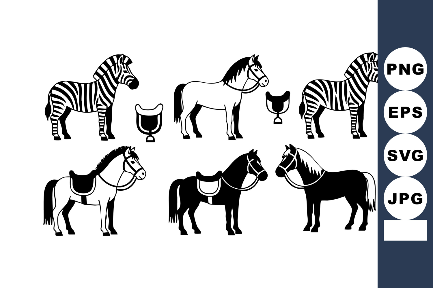 Zebra and Horse Vector with Saddles and Stirrups in Black a