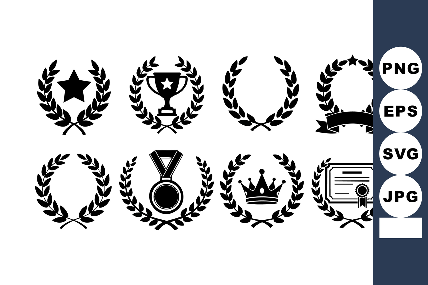 Laurel wreath icons with trophy, star, medal, crown, certifi example image 1