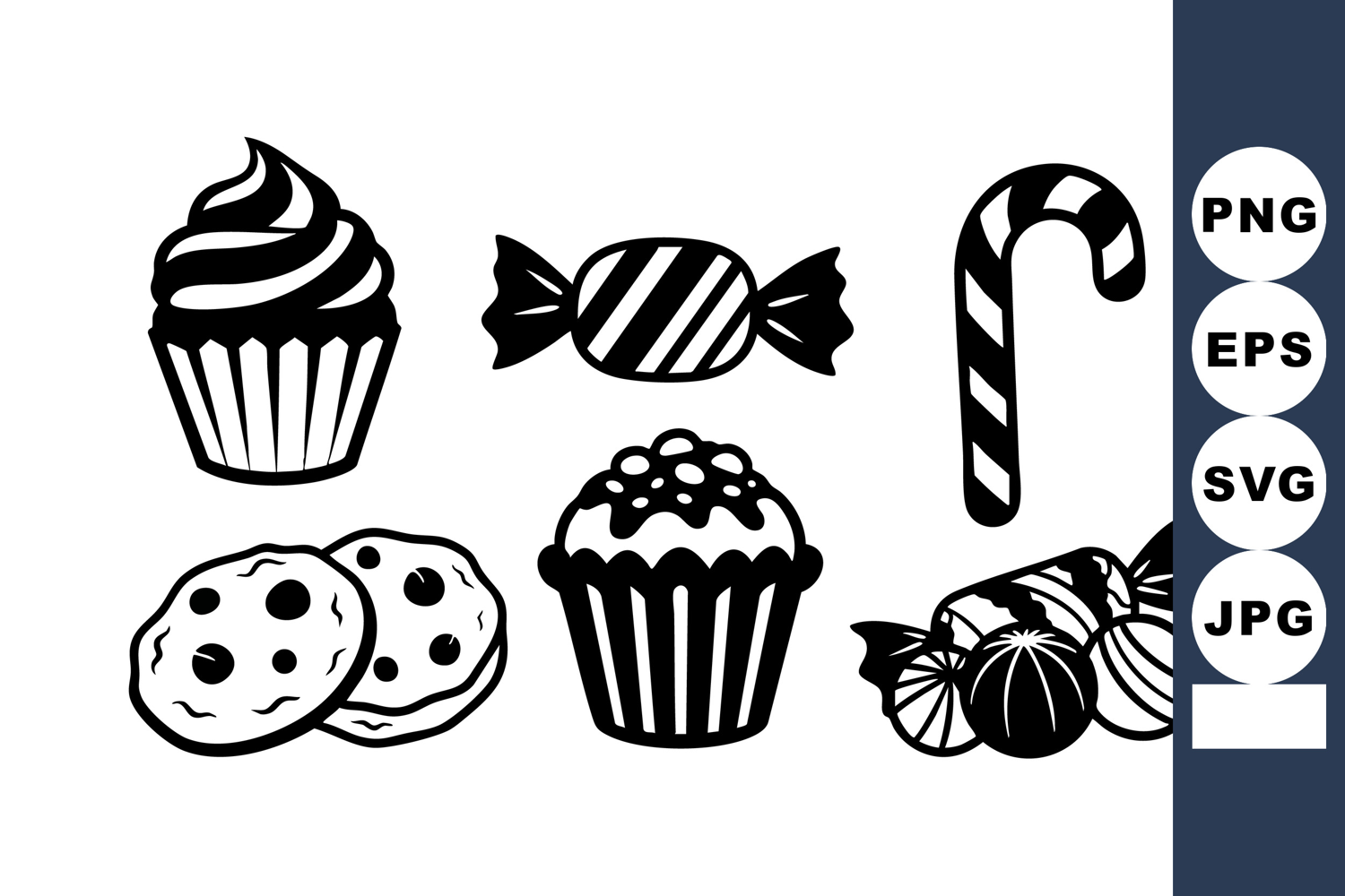 Illustration Vector Sweet Black Candy Cookie White Cupcake Dessert Treat