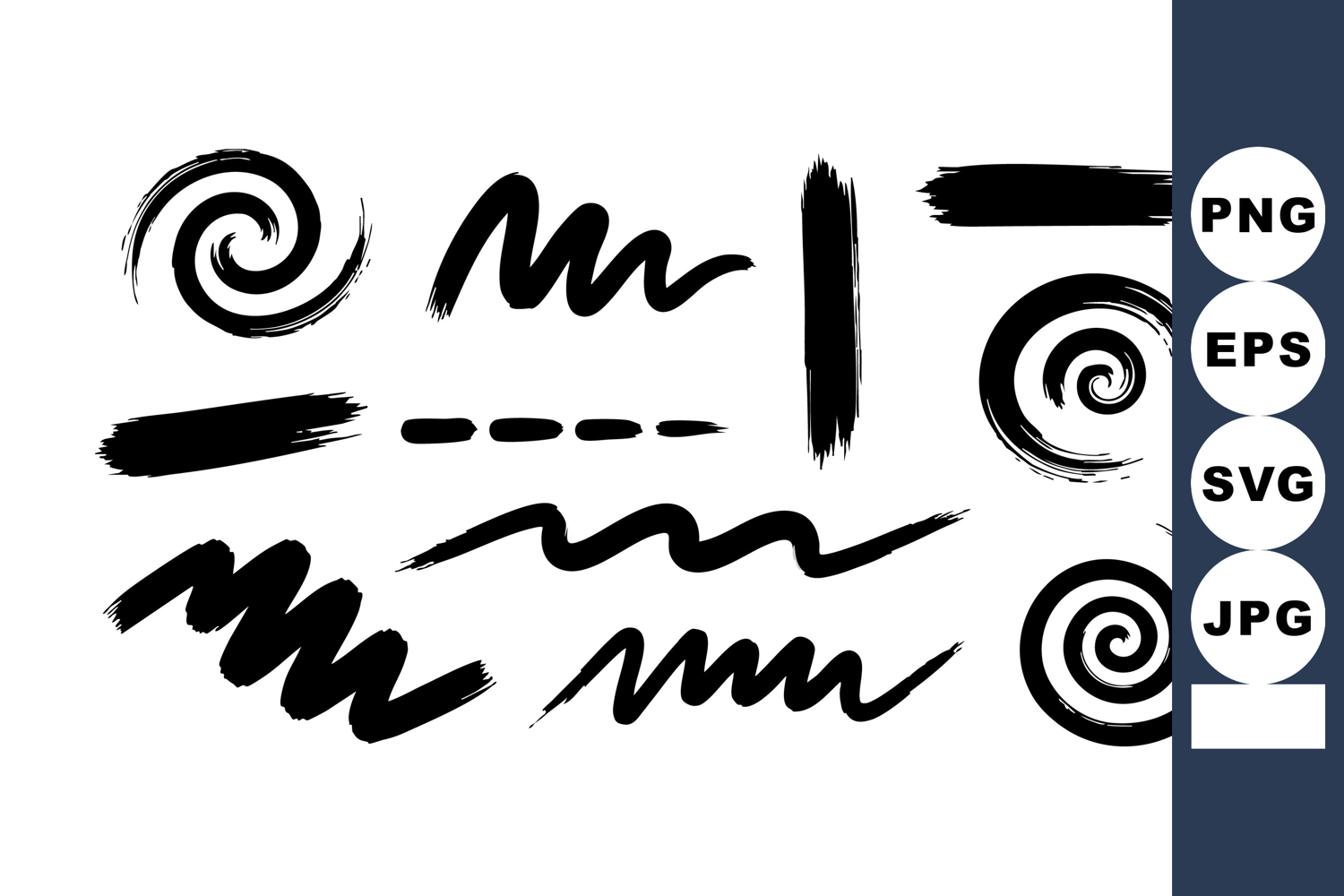 This vector features various black brush stroke shapes with an abstract, artistic style, perfect for creative projects and design work. The mood is dynamic.