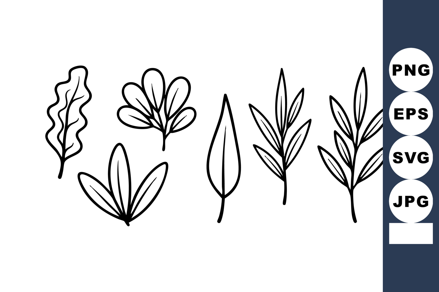 Collection of simple hand-drawn leaves and botanical element example image 1