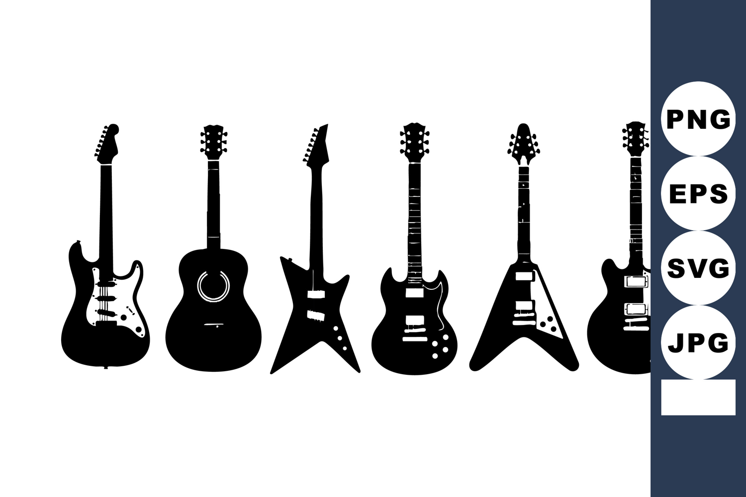 Electric and acoustic guitars vector silhouettes for music d