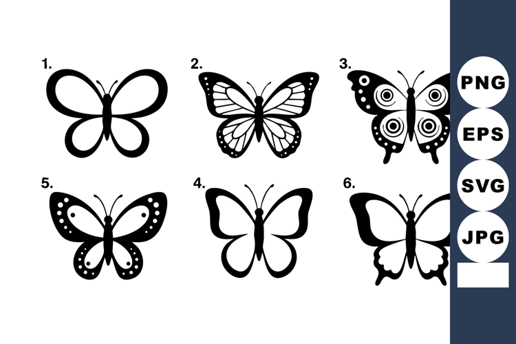 Butterfly silhouettes with six different black vector desig example image 1