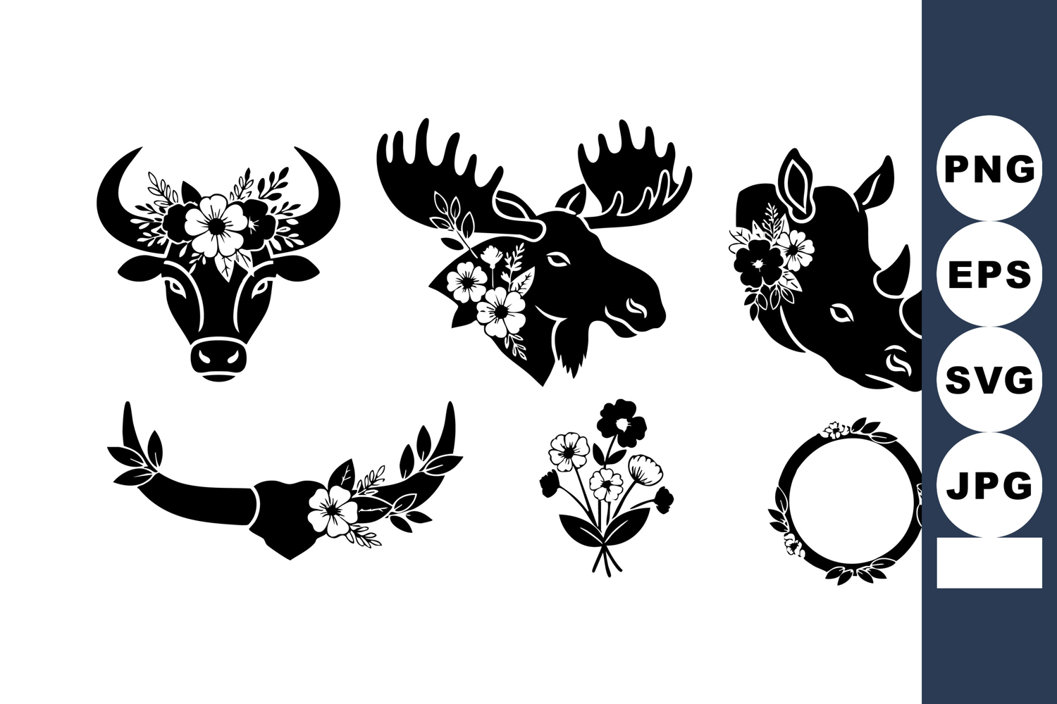 Animal Vector Floral Flower Silhouette Wreath Decoration Buffalo Moose Rhino