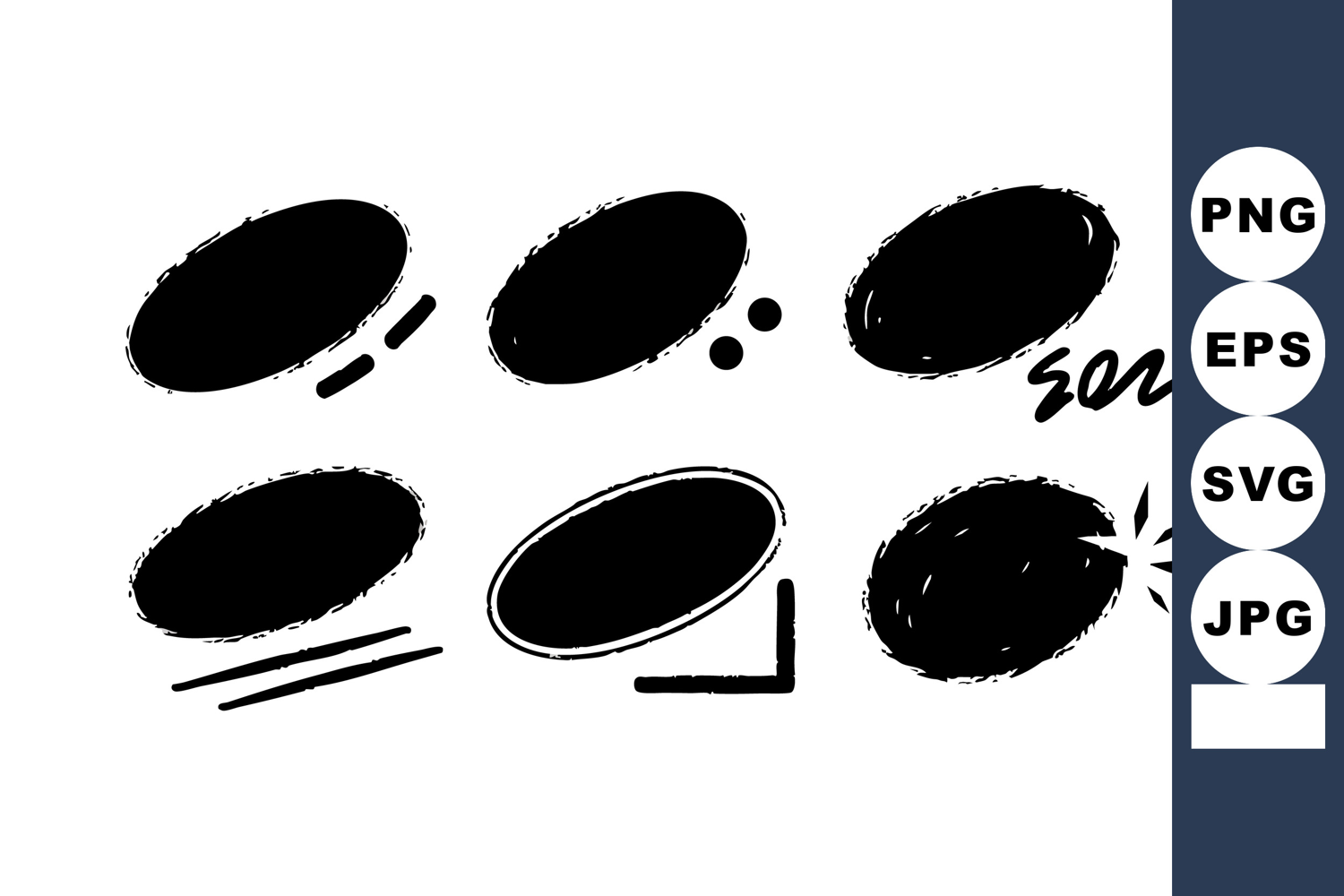 This vector file features abstract black brush stroke oval shapes with textured and smooth edges for versatile artistic and design use. Creative and dynamic mood.