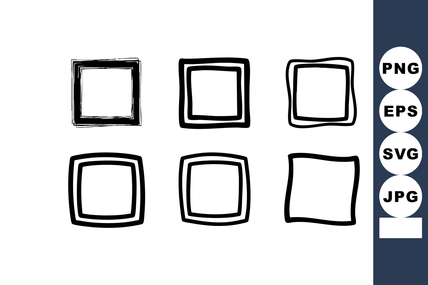 Abstract hand drawn black square frames in various styles ve example image 1