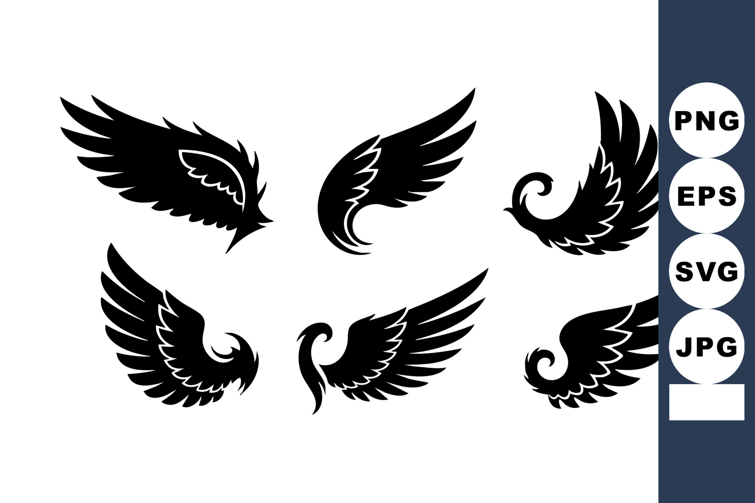 of black bird wings in different feather shapes and styles shown in vector format, perfect for design and decoration projects. Elegant and versatile mood.