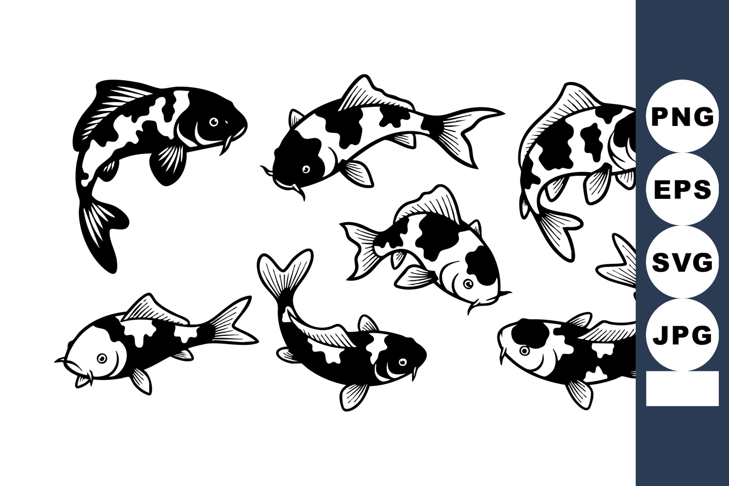 Koi Fish Vector with Black and White Pattern Designs for Aq