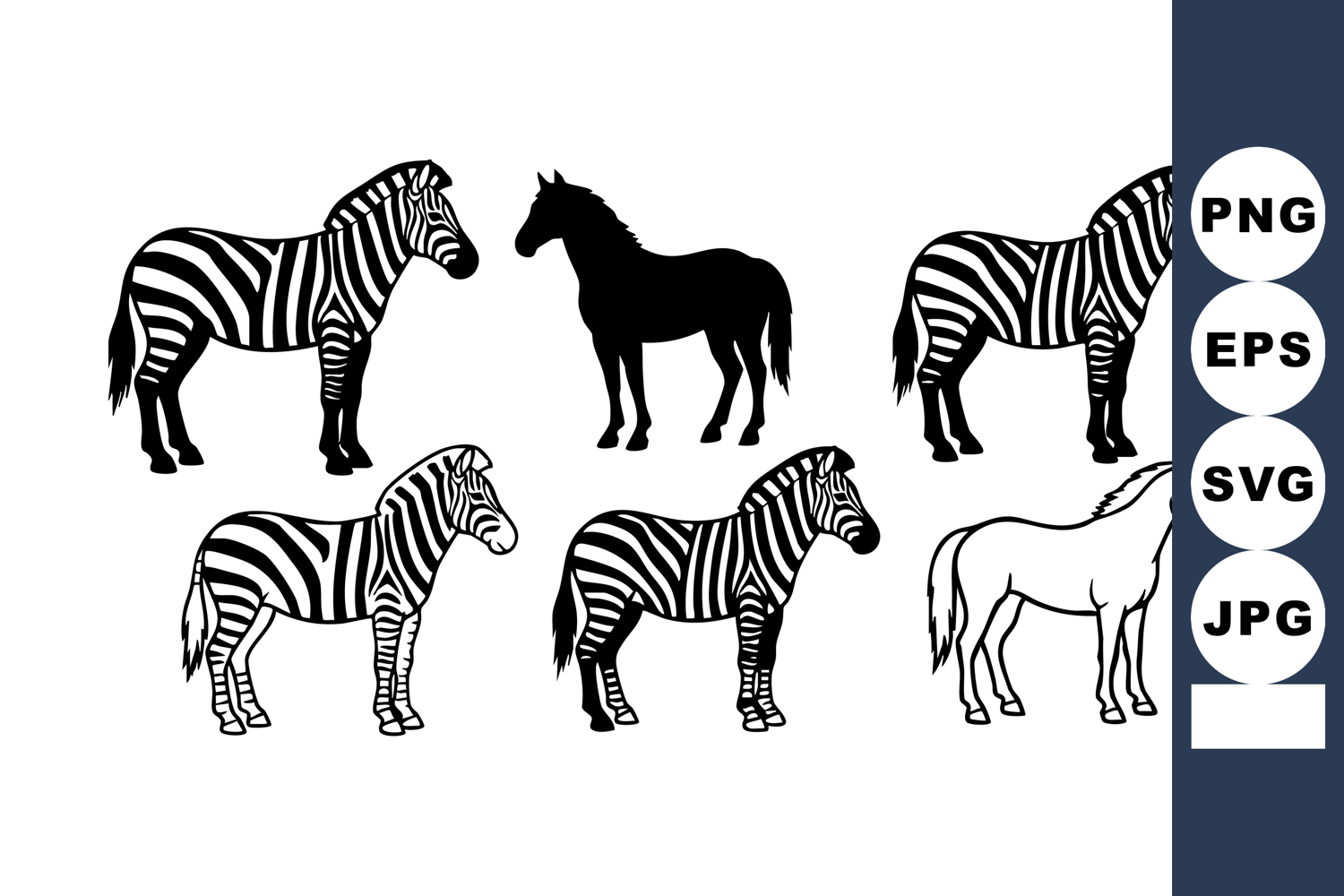 Silhouettes and Outlines of Zebras and Horses in Black and W example image 1