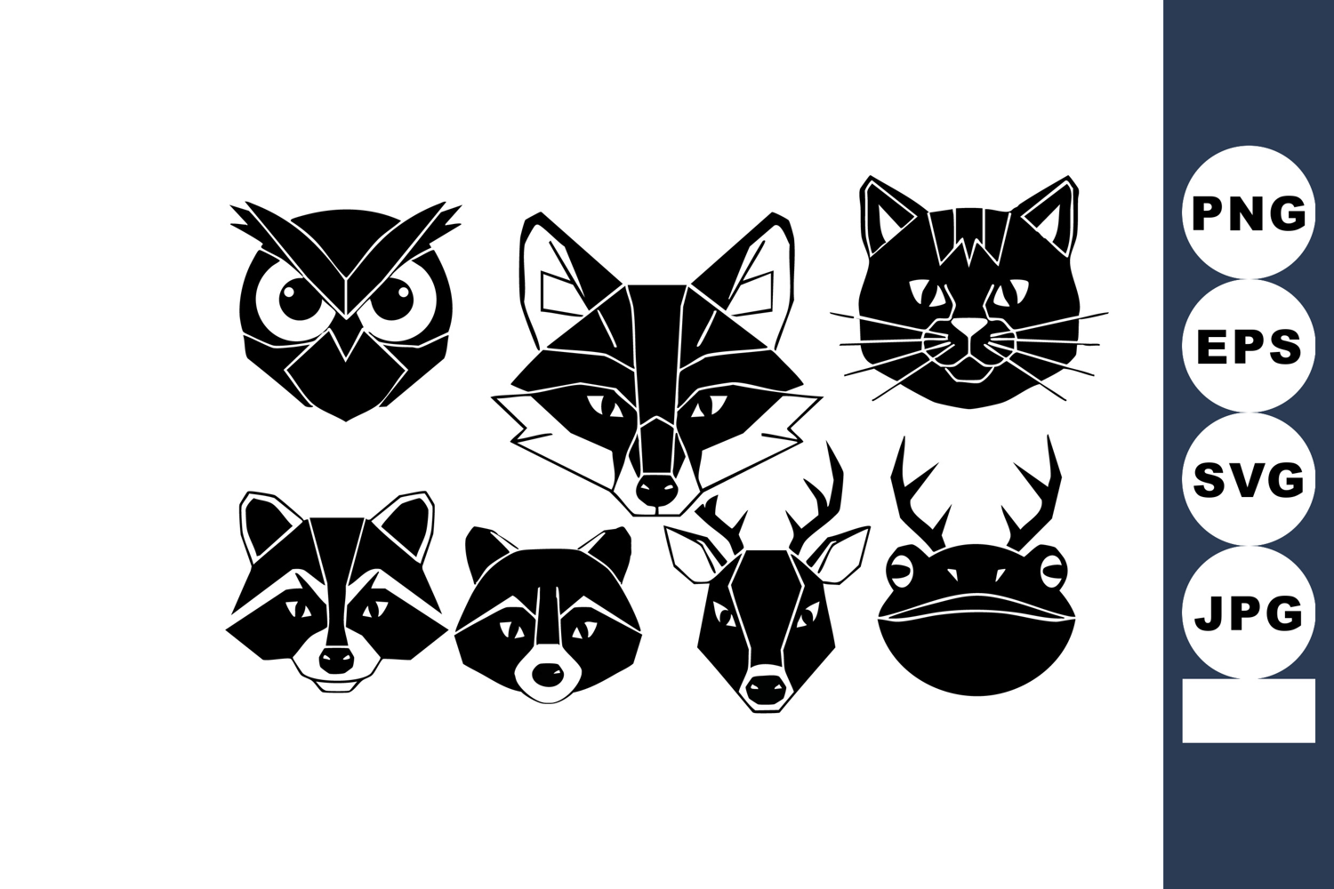 Animal faces vector collection including owl, fox, cat, racc example image 1