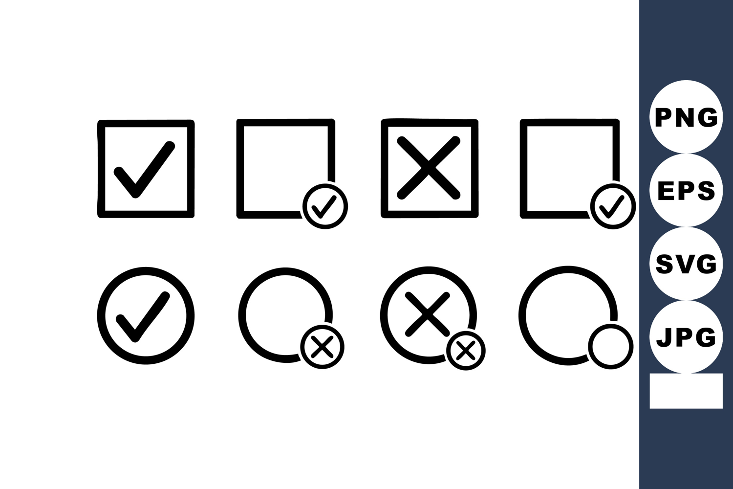 Checkmark and Cross Symbols Vector with Boxes and Circles f example image 1