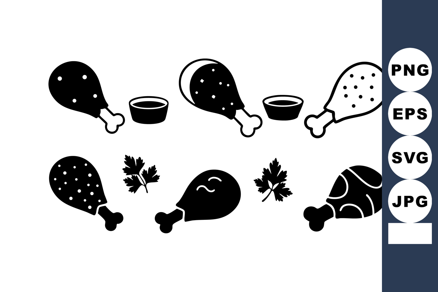 Chicken drumsticks vector with sauces and herbs in black an example image 1