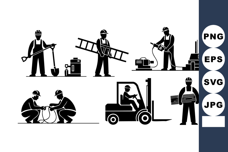 Silhouette Tool Machinery Industry Construction Worker Shovel Labor Forklift Ladder