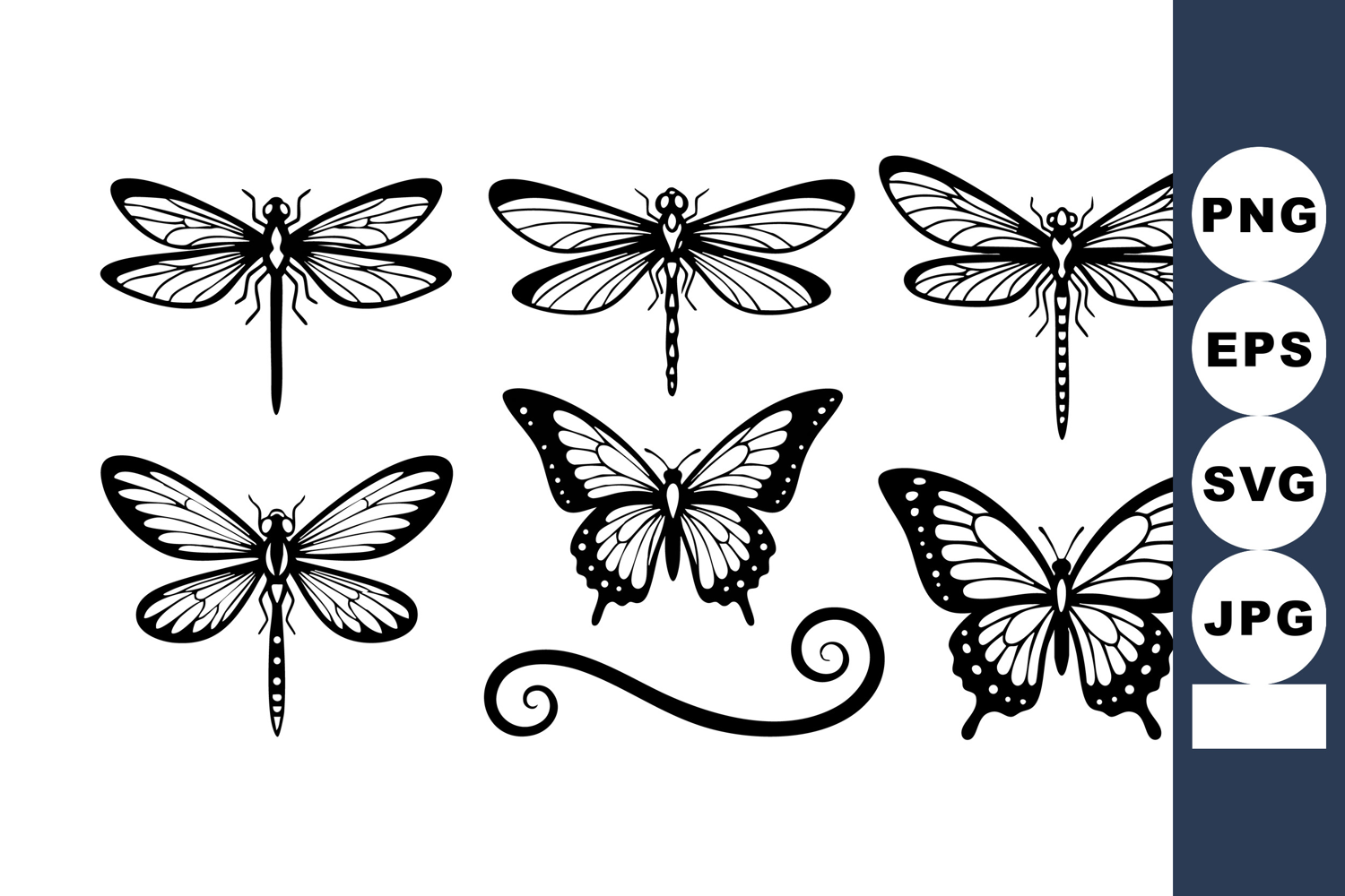 Similar Design Products to Vintage black and white dragonfly and butterfly vector colle