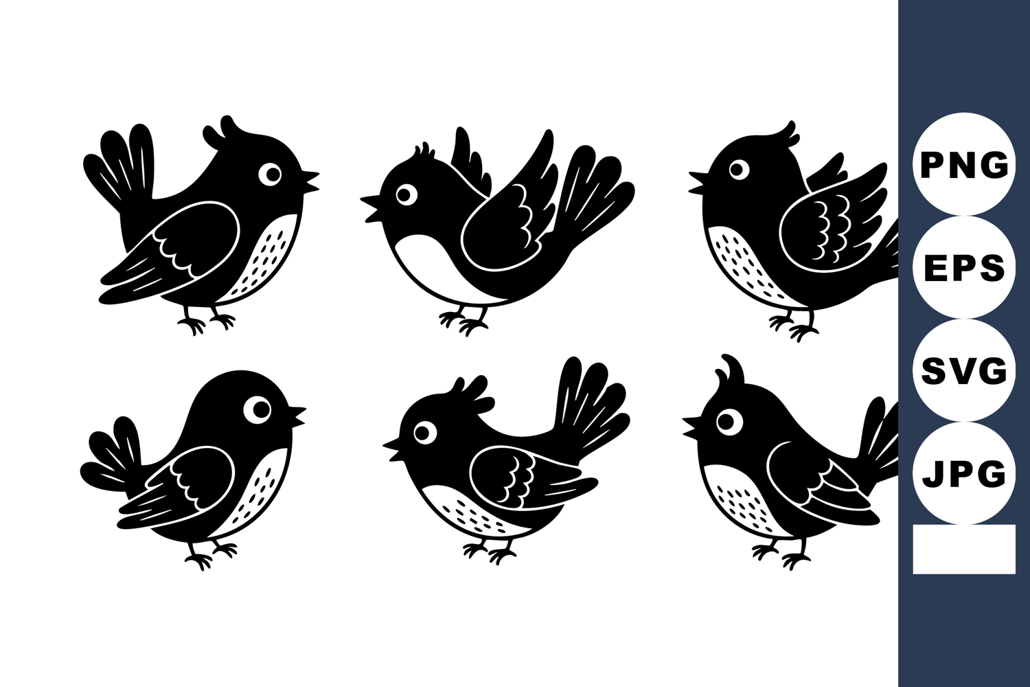 Cartoon Black Birds Bird White Pose Flying Standing Wing Belly