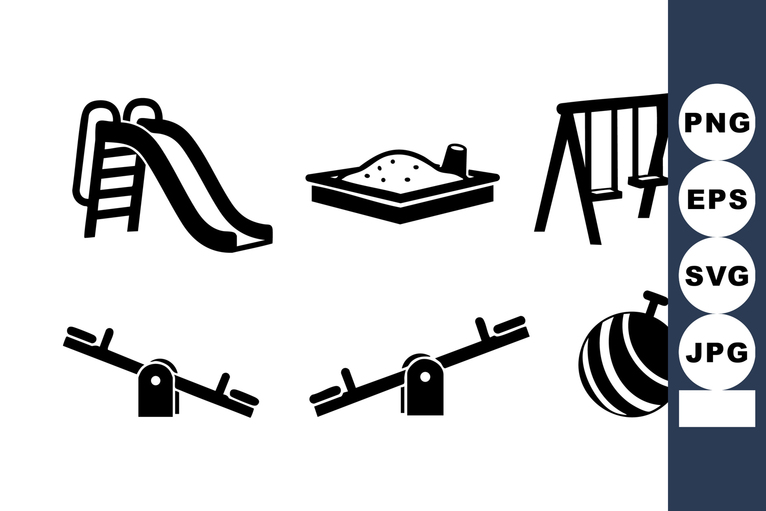 Playground equipment icons featuring slide sandbox swings se example image 1