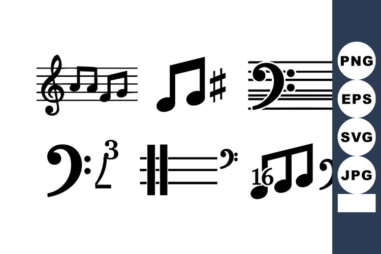 Music notes symbols collection with sharp, bass clef, and ti example image 1