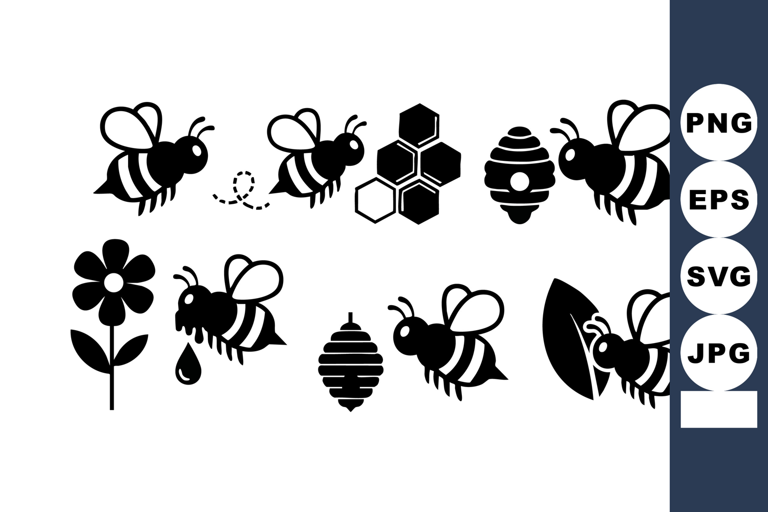 Vector Black Honey Leaf Flower Honeycomb Insect White Bee Pollination