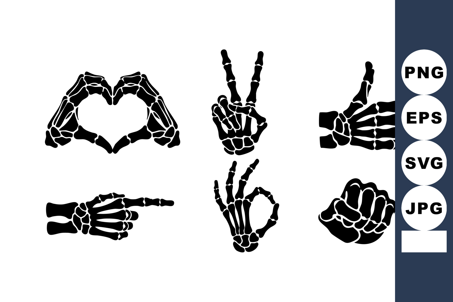 Skeleton hand gestures showing heart peace thumbs up and sig example image 1