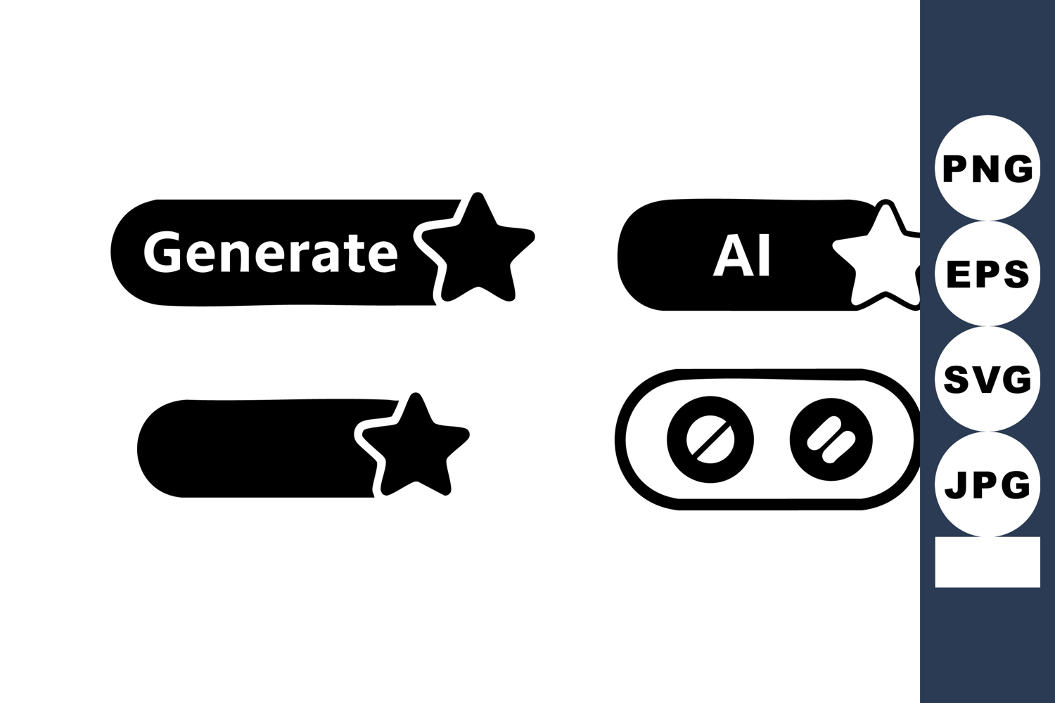 Vector file displays minimalist UI toggle buttons featuring star and AI icons in black and white, suitable for digital interfaces and user experience design, creating a modern and clean atmosphere.