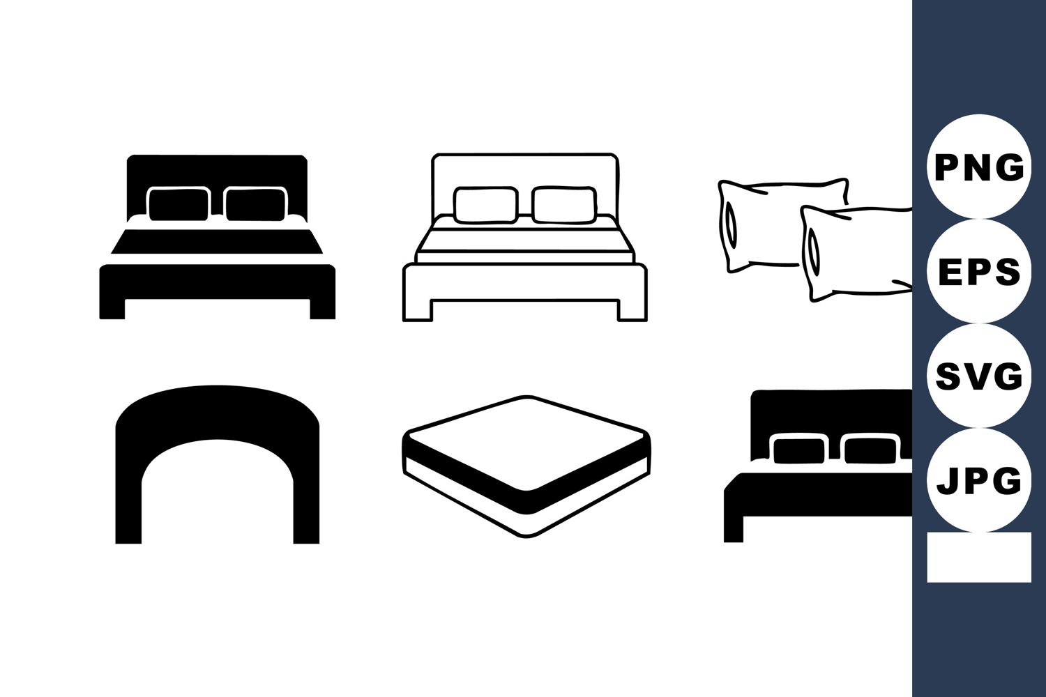 Bed and pillow icons set with mattress and headboard vector example image 1