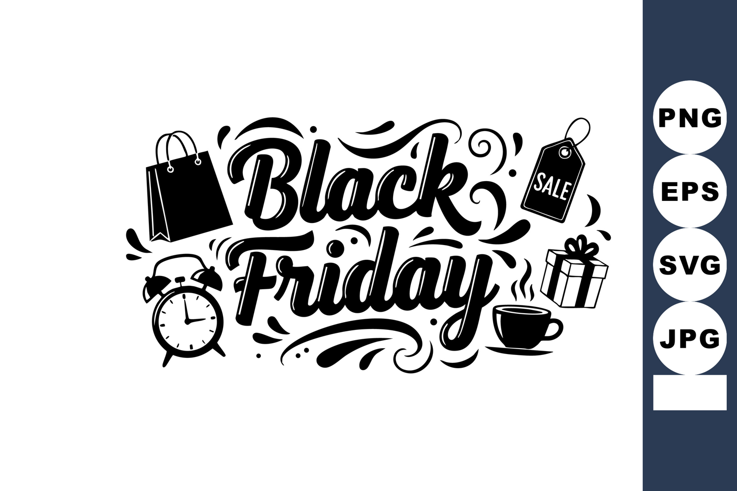 Black Friday shopping sale typography with gift bag alarm cl example image 1