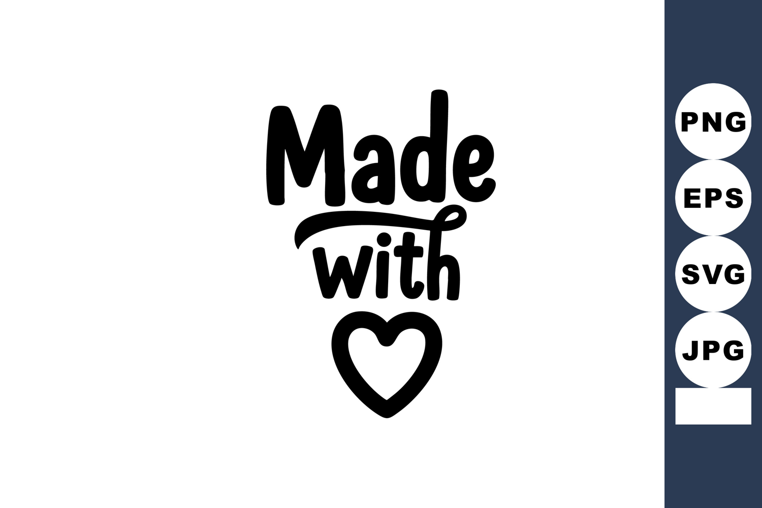 This vector features a hand-drawn Made with text above a heart symbol in black. It conveys affection and care in a minimalistic style. Clean and charming.