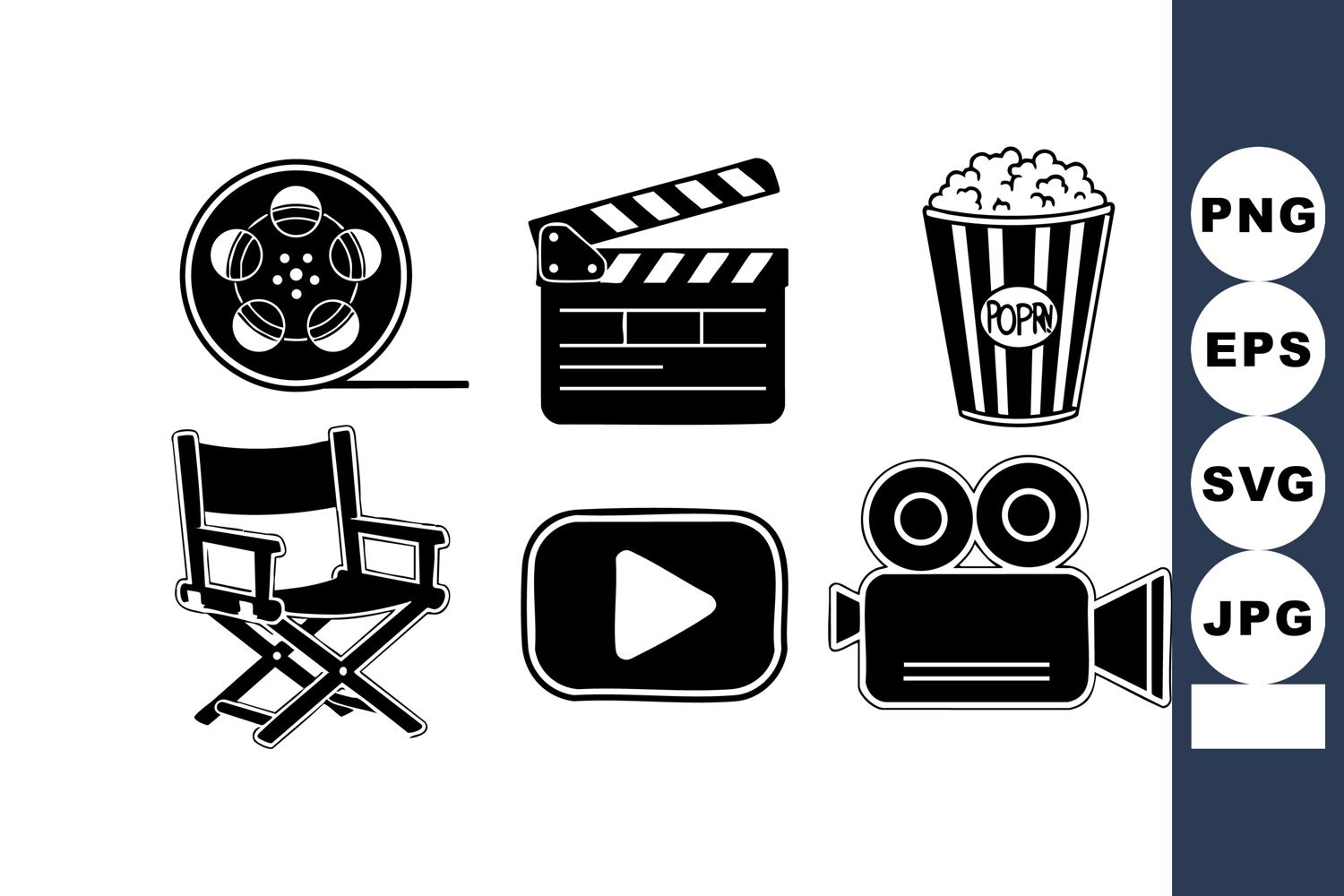 Movie Film Play Button Chair Cinema Reel Director Popcorn Clapperboard