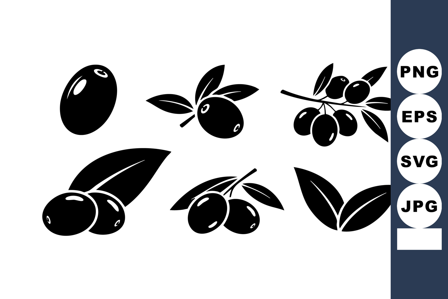 Black Olive Vector Set with Leaves and Branches Various Simp example image 1