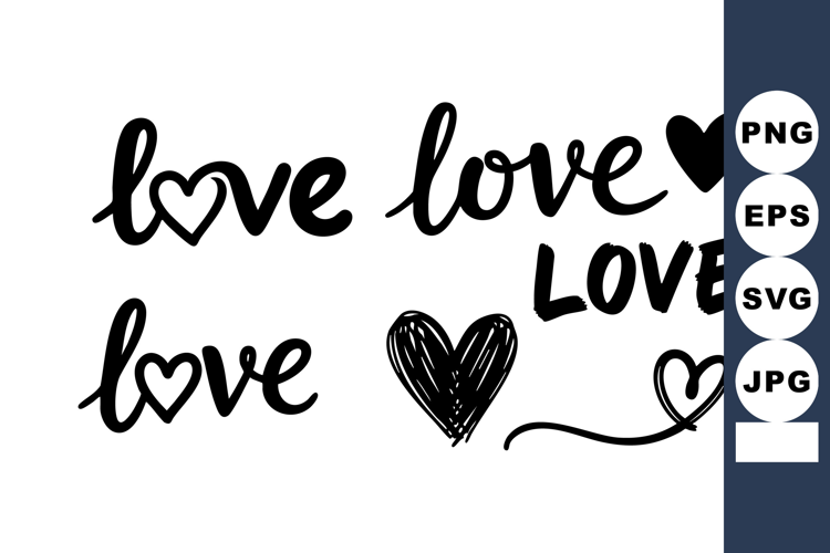 Handwritten love text with heart shapes in black ink vector example image 1