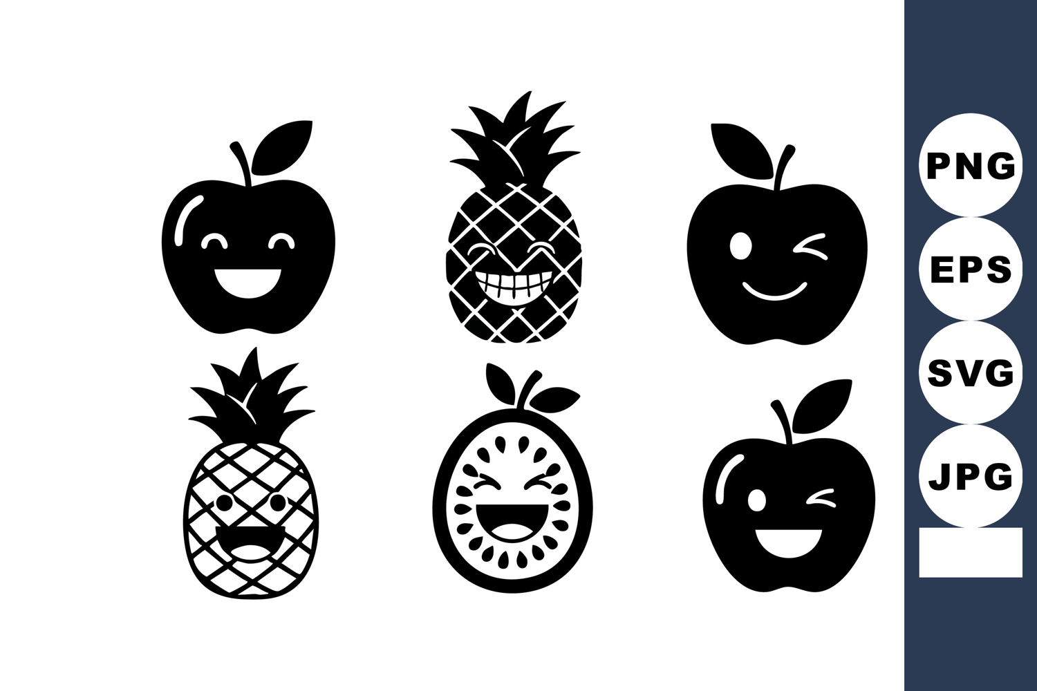 Fruit Vector Icon Smile Happy Silhouette Face Apple Pineapple Wink