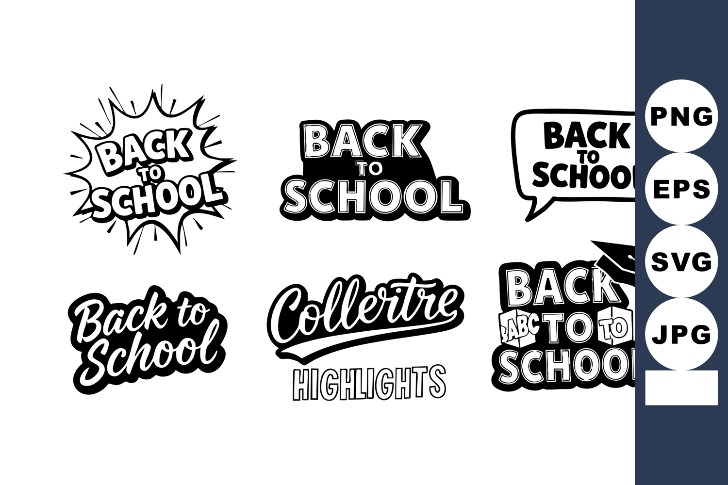 Vector set featuring various back to school text designs including speech bubble and graduation cap elements, perfect for education and learning projects. Bright and clear style, inspiring mood.