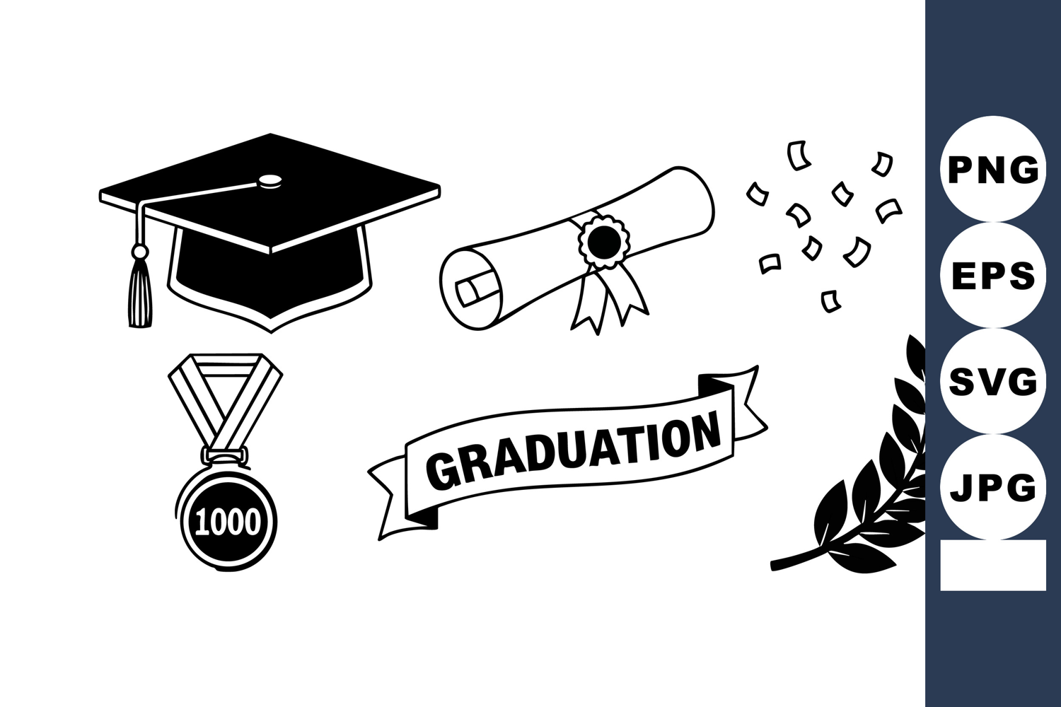 Graduation cap diploma medal laurel wreath confetti celebrat