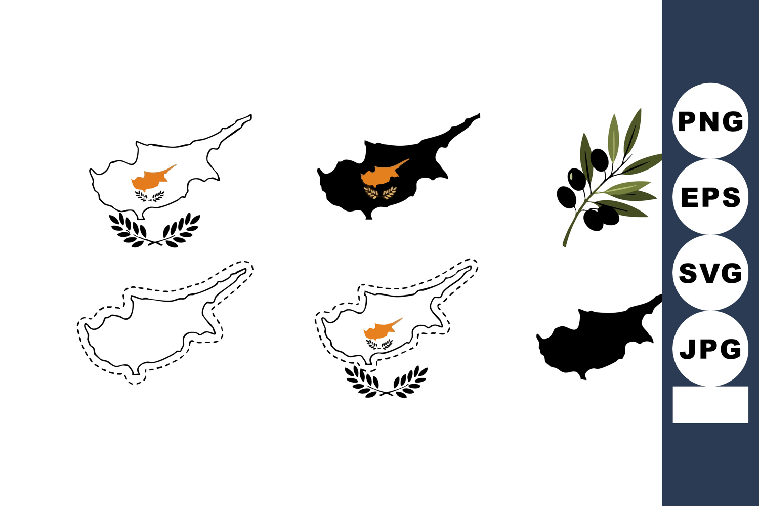 Cyprus map icons with olive branch and leaves vector set in example image 1