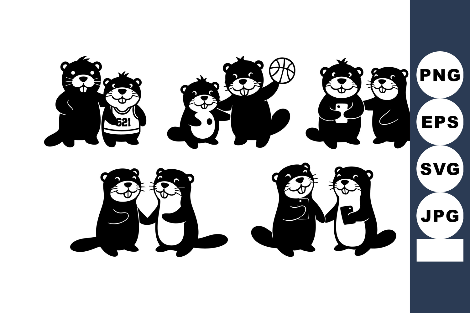 Illustration Animal Vector Black Cute Play Silhouette Basketball Otter Pair