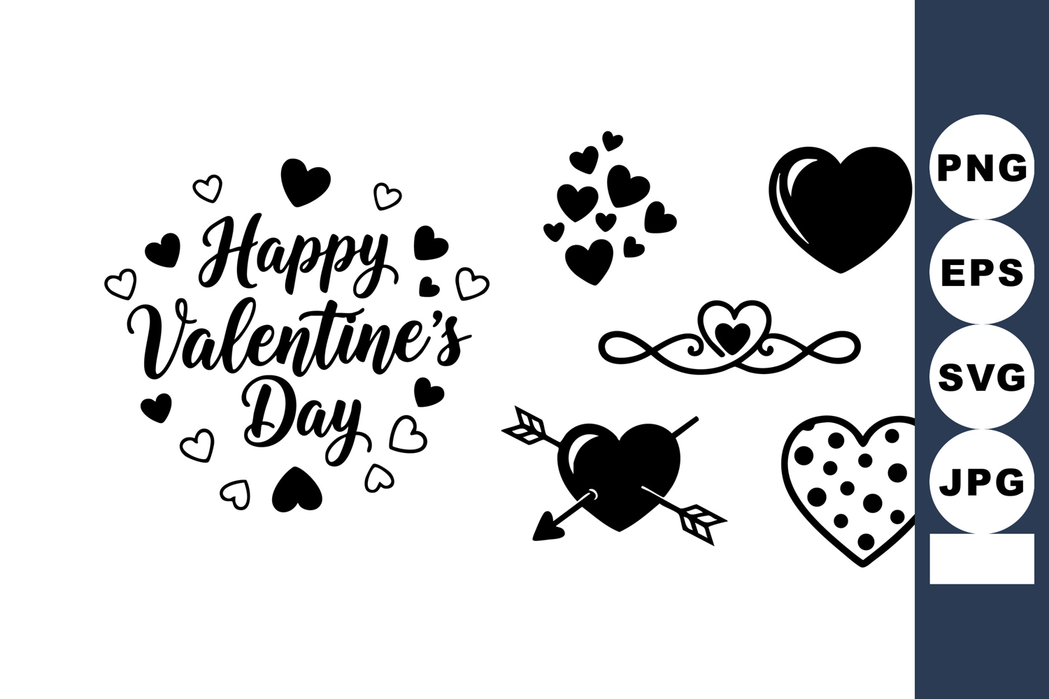 This vector set displays various black love heart symbols and romantic elements for Valentines Day celebration, including arrows and decorative hearts, creating a charming and affectionate mood.