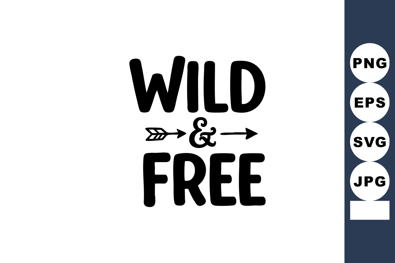 This vector features bold black text saying Wild and Free with arrows, presenting an artistic and motivational design in a simple style. The mood is uplifting and free-spirited.