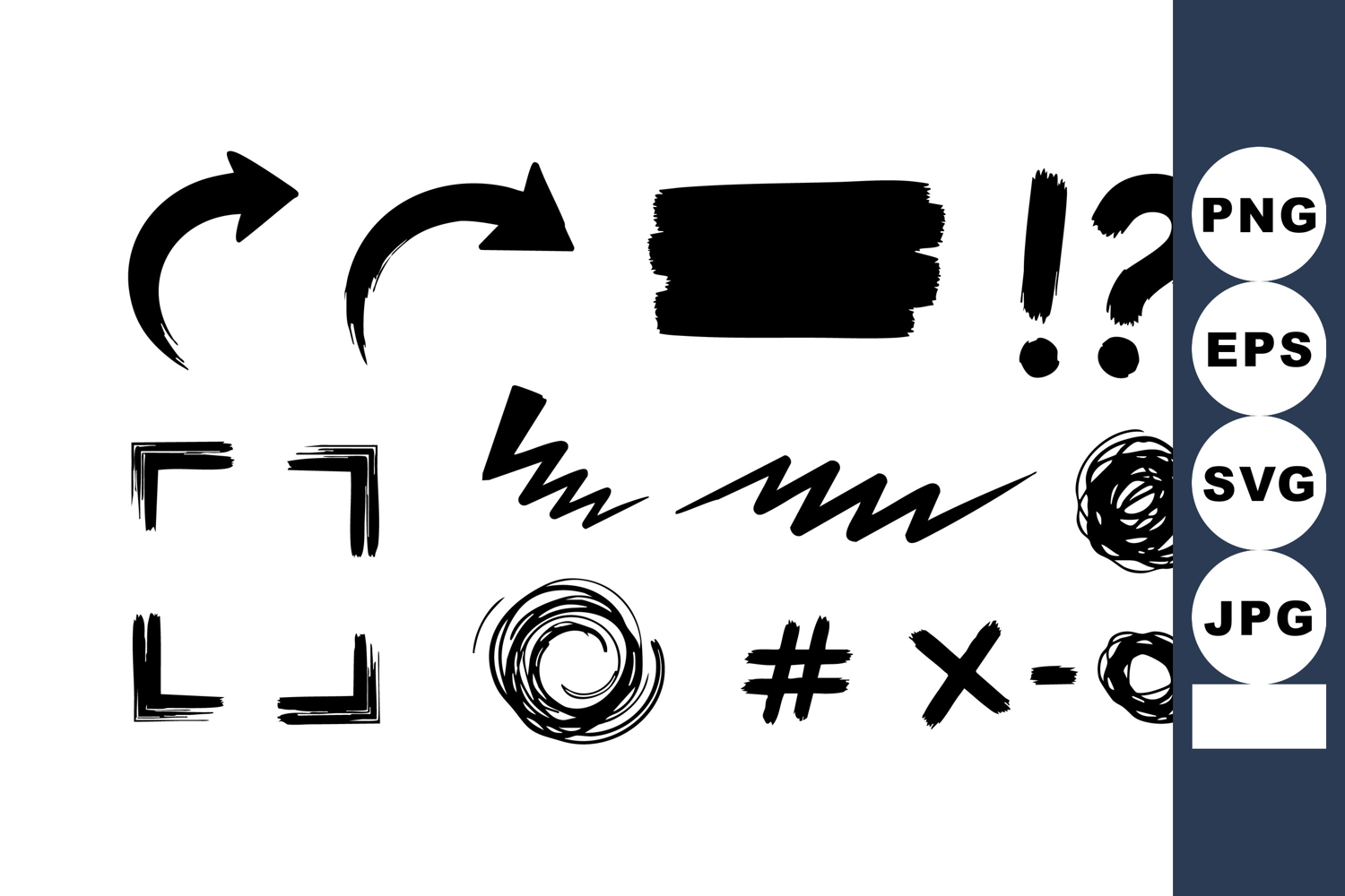 Black hand-drawn abstract symbols set with arrows question m example image 1
