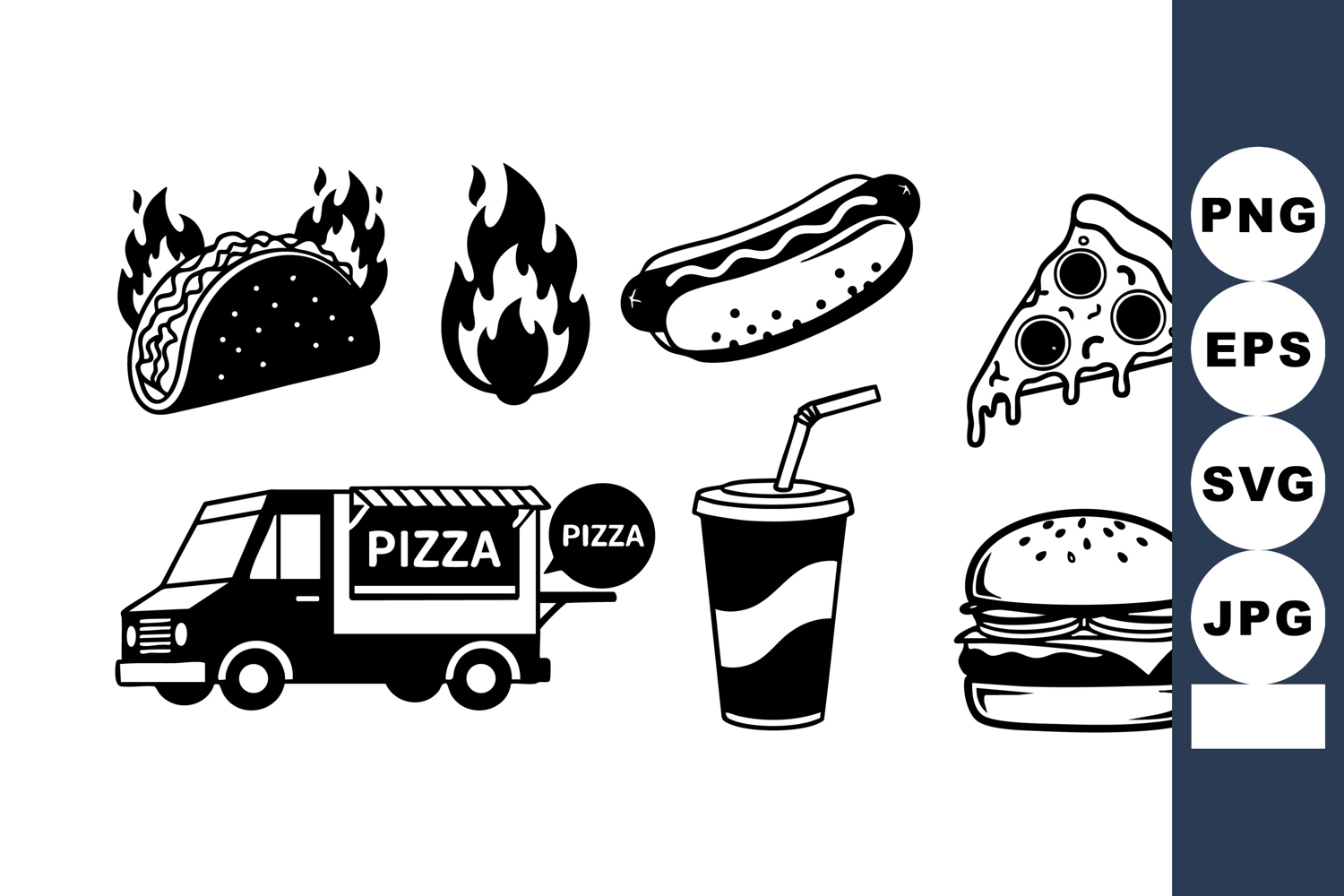 Food Fast Drink Fire Flame Pizza Slice Taco Hotdog Sausage