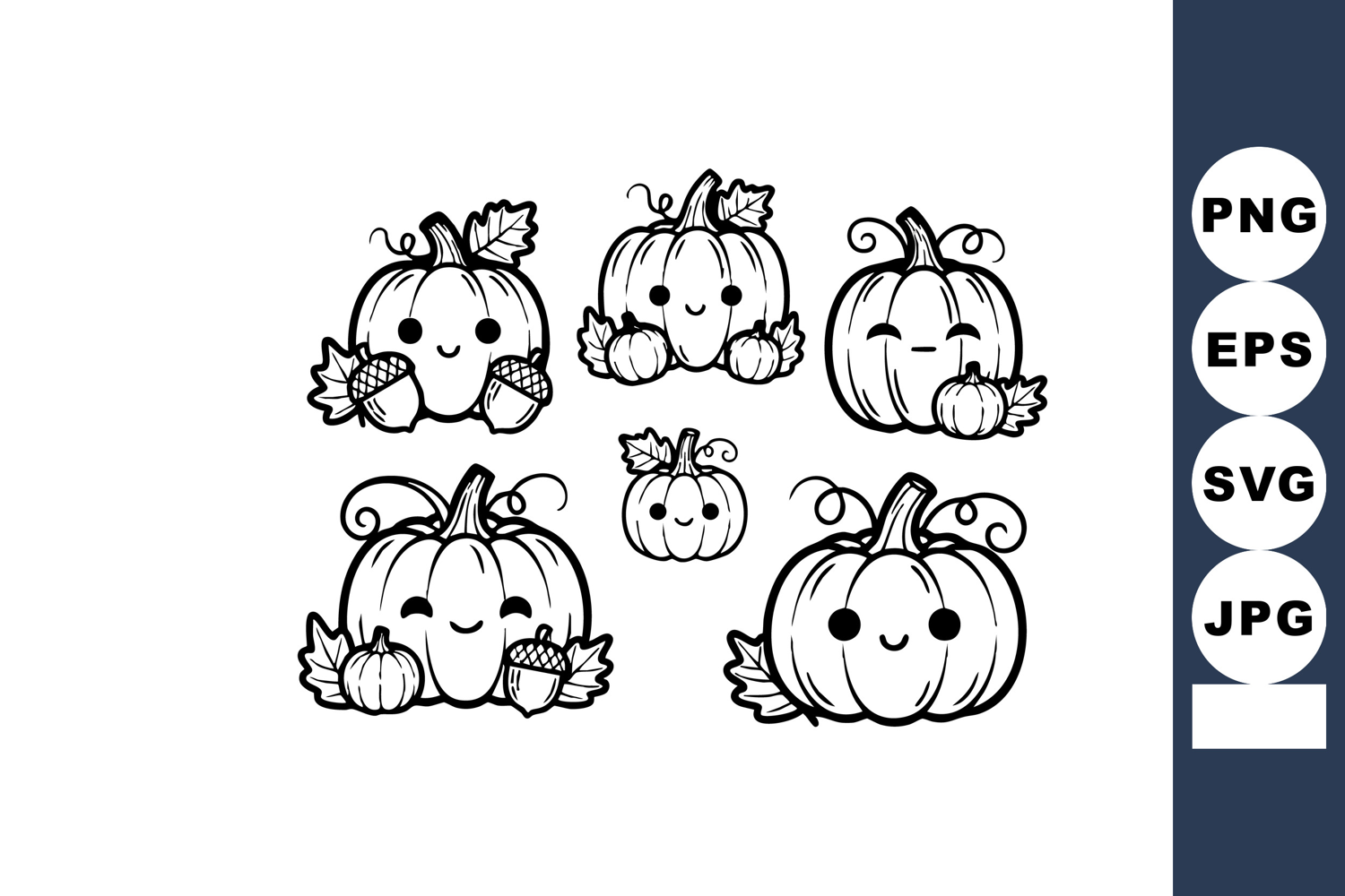 Cute happy pumpkin characters with smiling faces and tiny le example image 1
