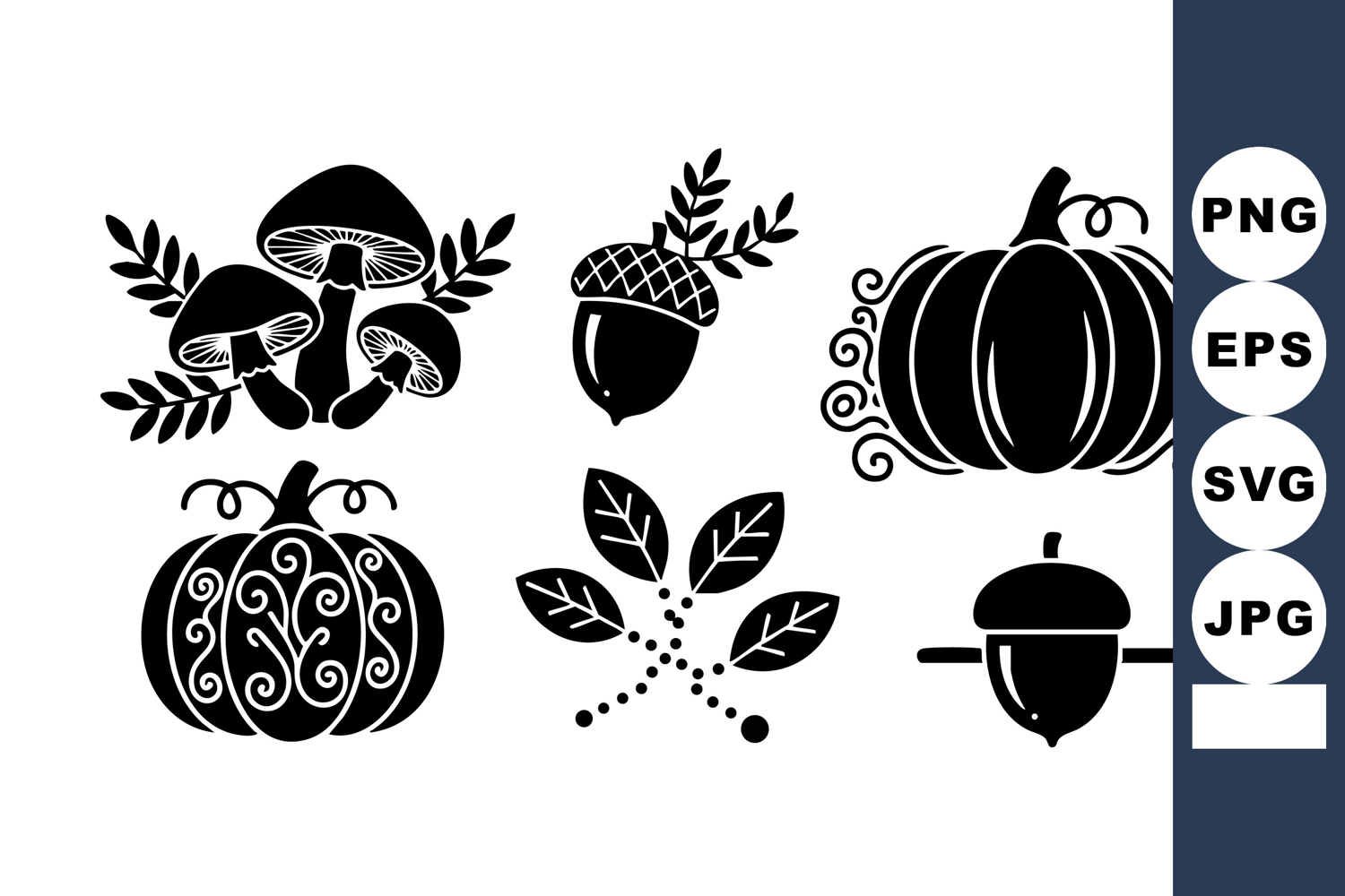Illustration Vector Black Leaf Silhouette Autumn Fall Mushroom Pumpkin Acorn
