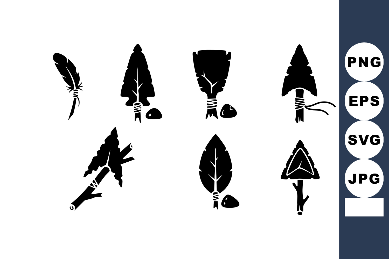 Tribal Silhouette Hunting Feather Tool Stone Ancient Weapon Primitive Arrowhead