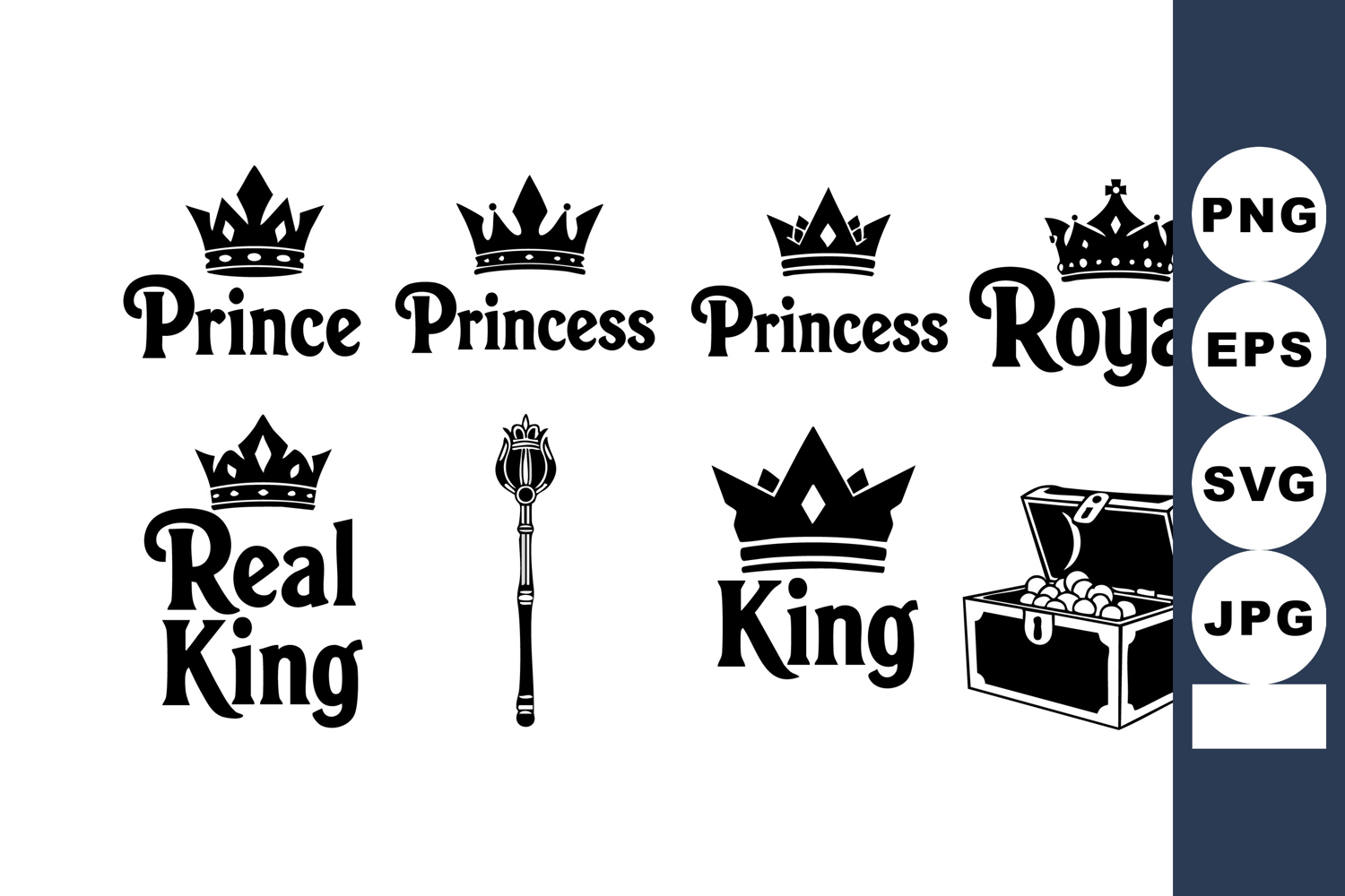 Title Royal Silhouette Crown King Princess Treasure Coins Prince Chest