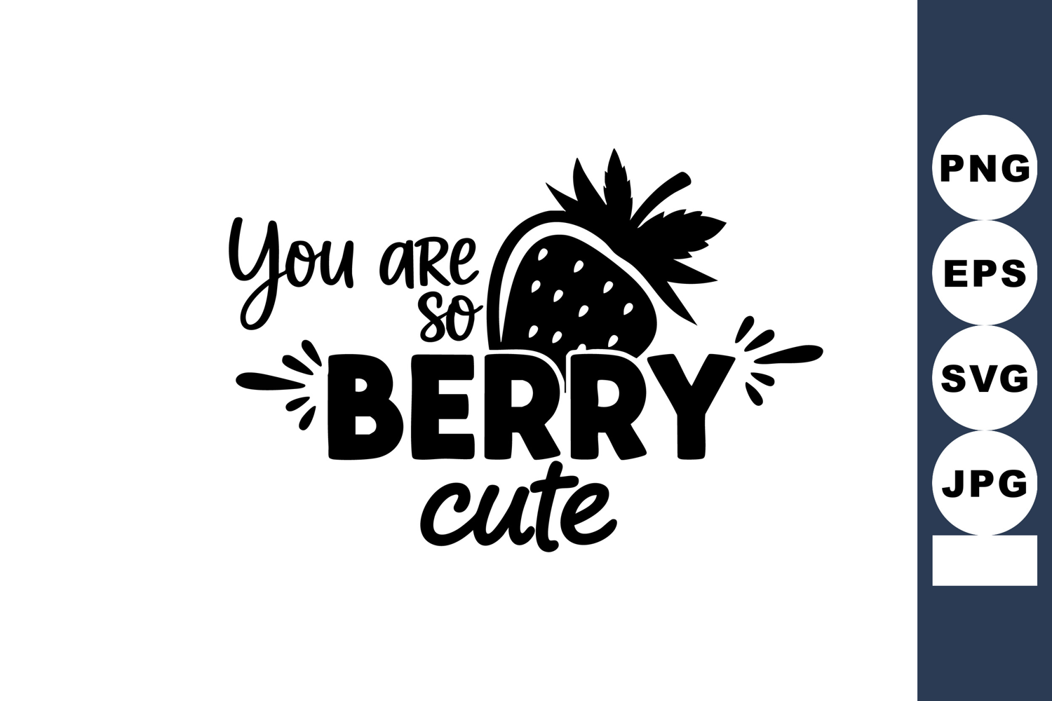 This vector features a playful strawberry with the phrase You Are So Berry Cute, perfect for fun designs on apparel or gifts, conveying a lighthearted and charming mood.