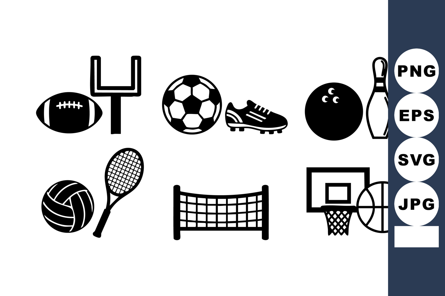 Similar Design Products to Sports equipment icons including football, soccer ball, clea